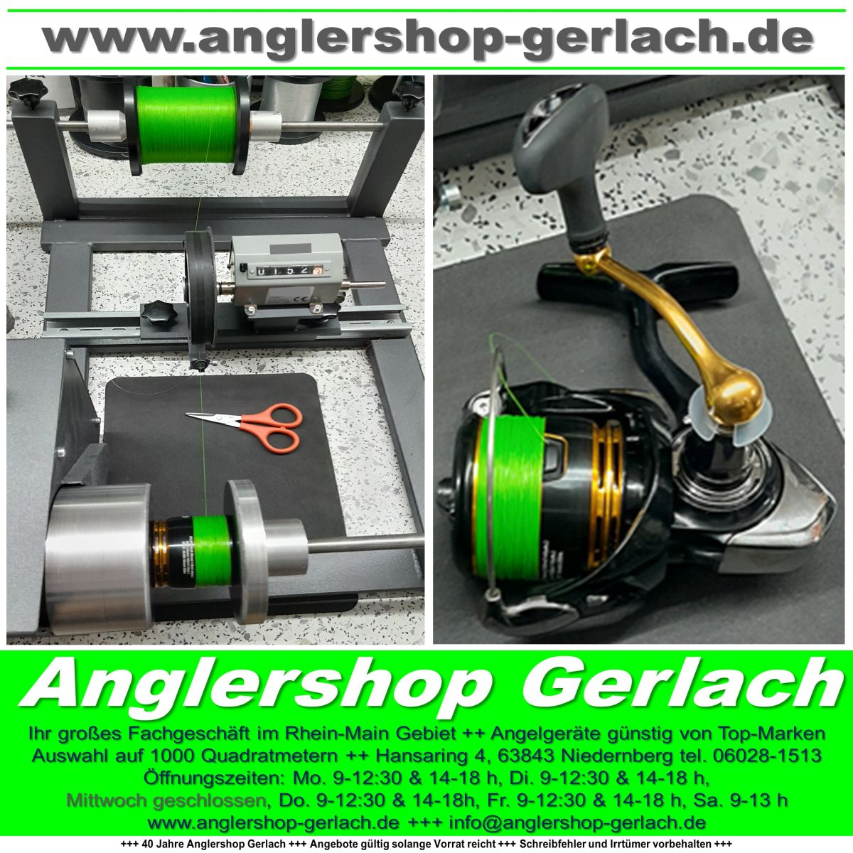 Gerne befüllen wir Ihre mitgebrachten oder neu gekauften Rollen fachmännisch für Sie mit einer bei uns gekauften Schnur Ihrer Wahl.